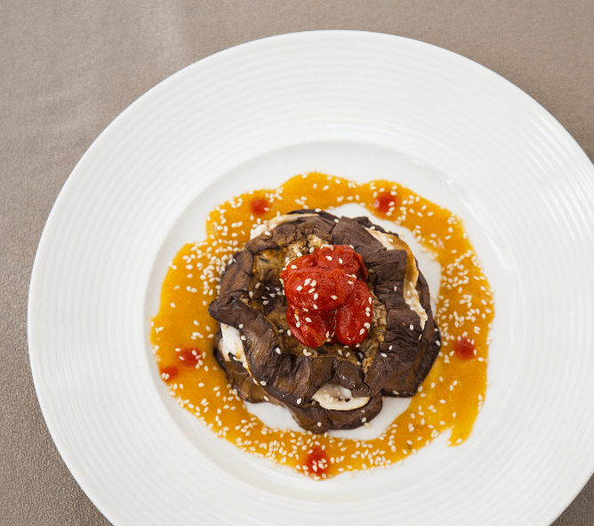 A stunning chef’s take on a fusion aubergine parmigiana that will amaze your guests!